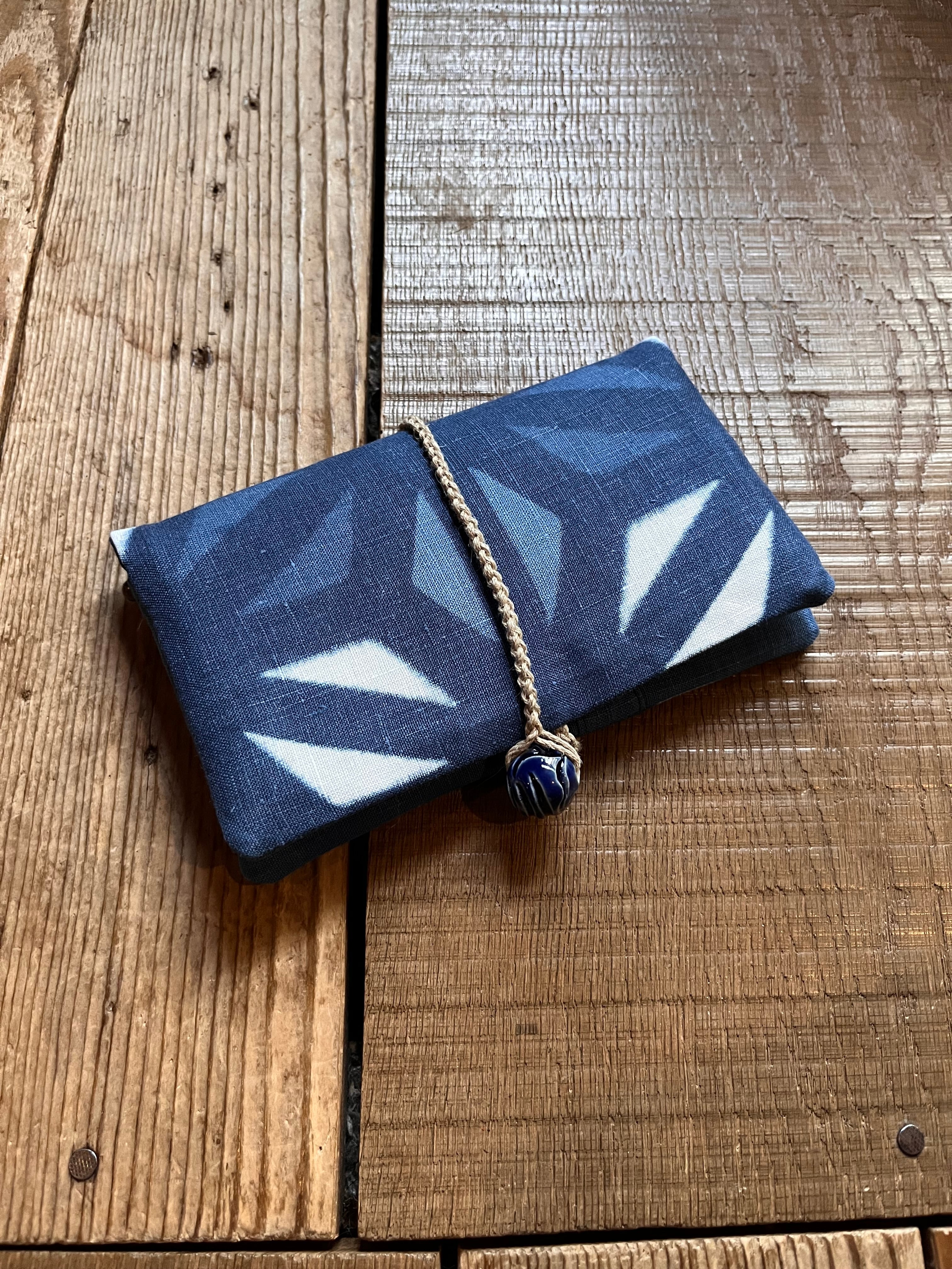 ヘンプ100%の生地にHawa Creationさんにお願いして、特別に藍染めの板締め絞りを施して頂いた特別なお財布です。